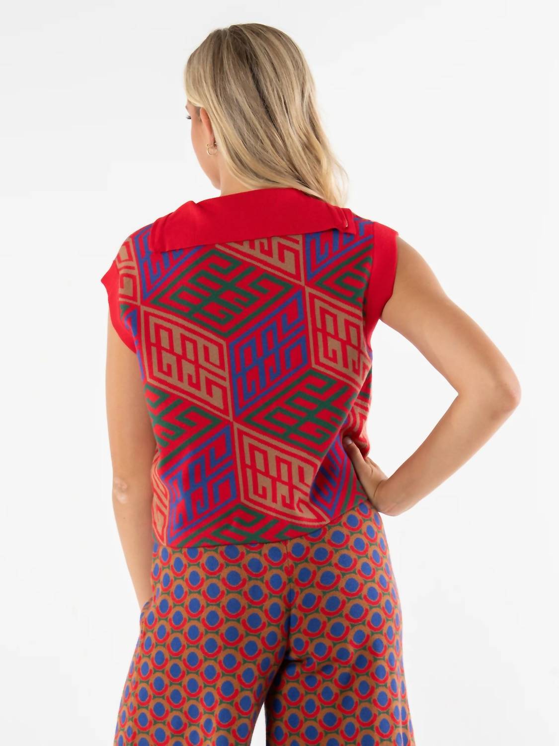 A vest so versatile you can mix and match it with almost any outfit and it will feel brand new every time. Introducing the Poppy Pullover Vest by Emily McCarthy, a standout piece in the Vintage Monogram pattern that embodies bold, boho-chic style. This sleeveless vest features an oversized fold-over collar and a ¾ zip neckline for a relaxed silhouette that's easy to style. Crafted in Turkey from a high-quality viscose blend, it boasts a composition of 72% Viscose and 28% Polyester. Care instructions suggest hand washing or dry cleaning for optimal maintenance.