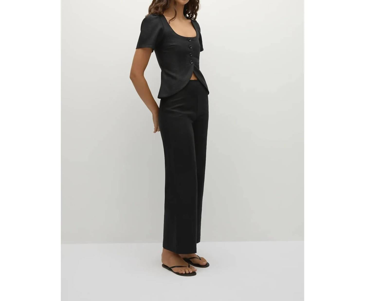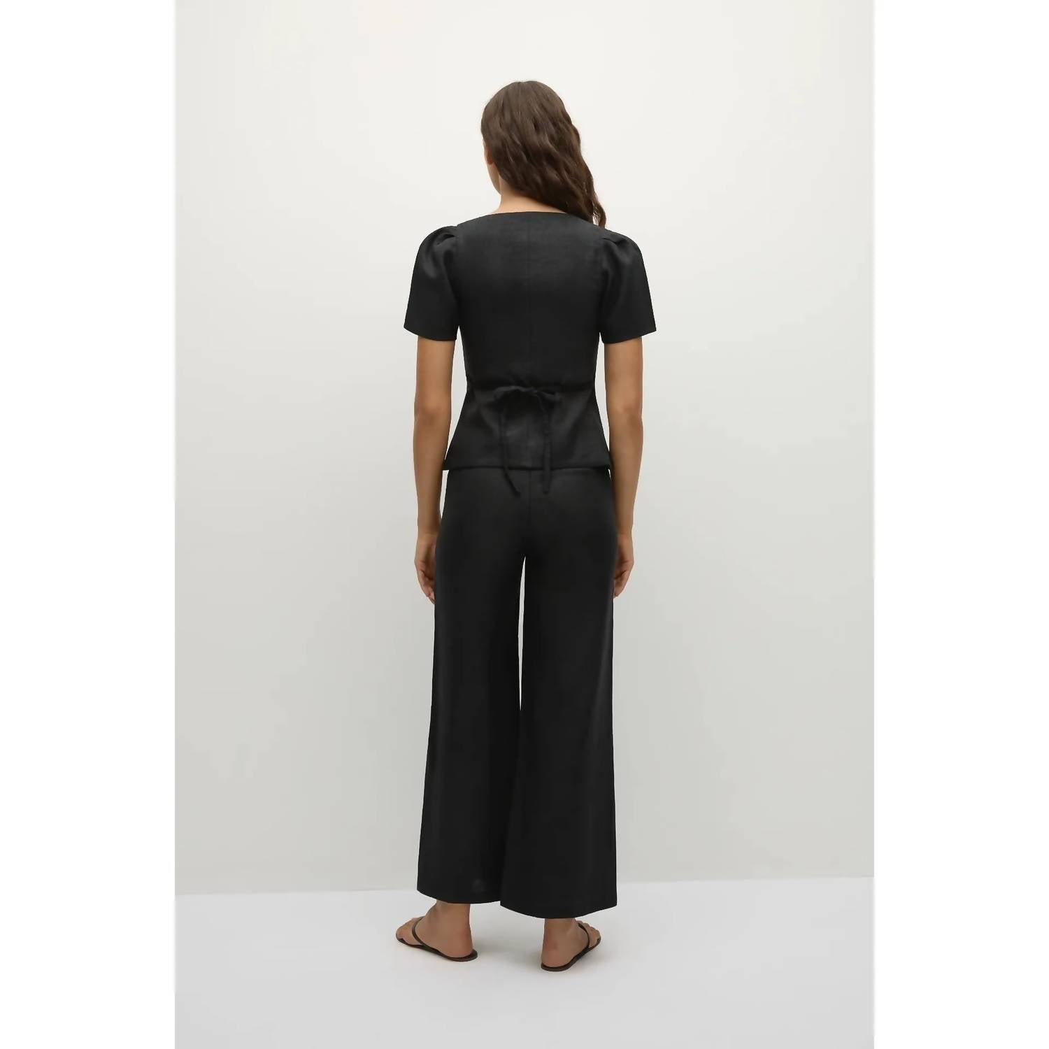 A vest so versatile you can mix and match it with almost any outfit and it will feel brand new every time. Stylish preppy addition to your spring wardrobe. Crafted from 100% European Flax linen. Featuring a square neckline and oversized cap sleeves for a relaxed fit. Boasts a button closure down the front and a back waist tie for customizable cinching, while the rounded hem and full cotton lining ensure it holds its shape beautifully. Care instructions recommend hand washing in cold water, using environmentally friendly detergents, and hanging to dry.