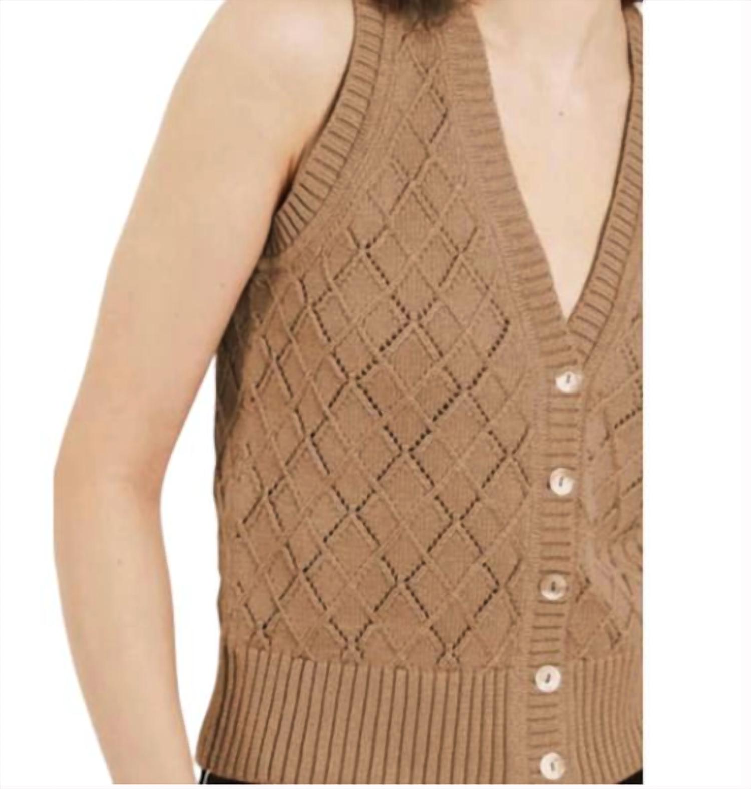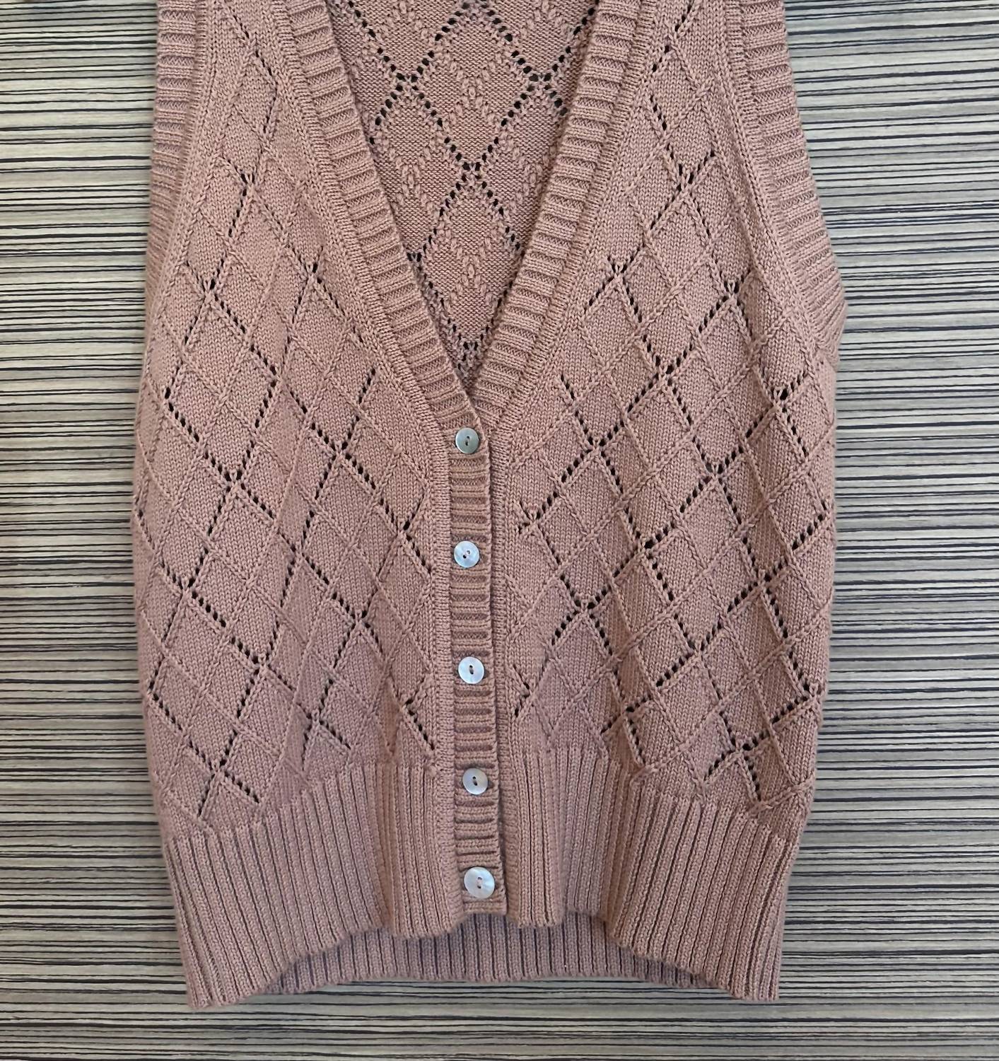 A cropped, button-down layering piece featuring a classic diamond-knit pattern and ribbed hem for a flattering fit. Made from 100% Pima cotton, true to size, and machine or hand washable. Made in Peru.