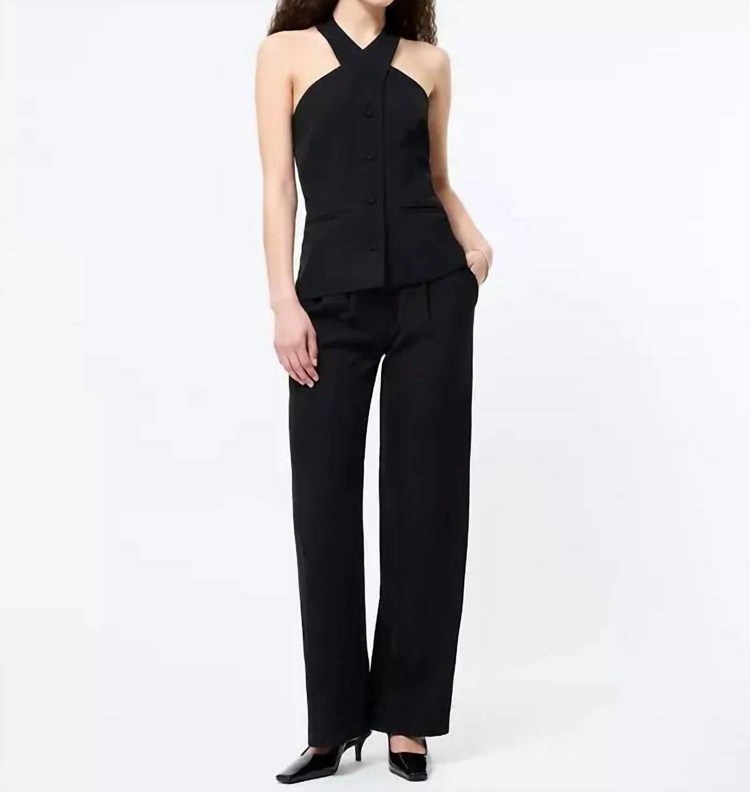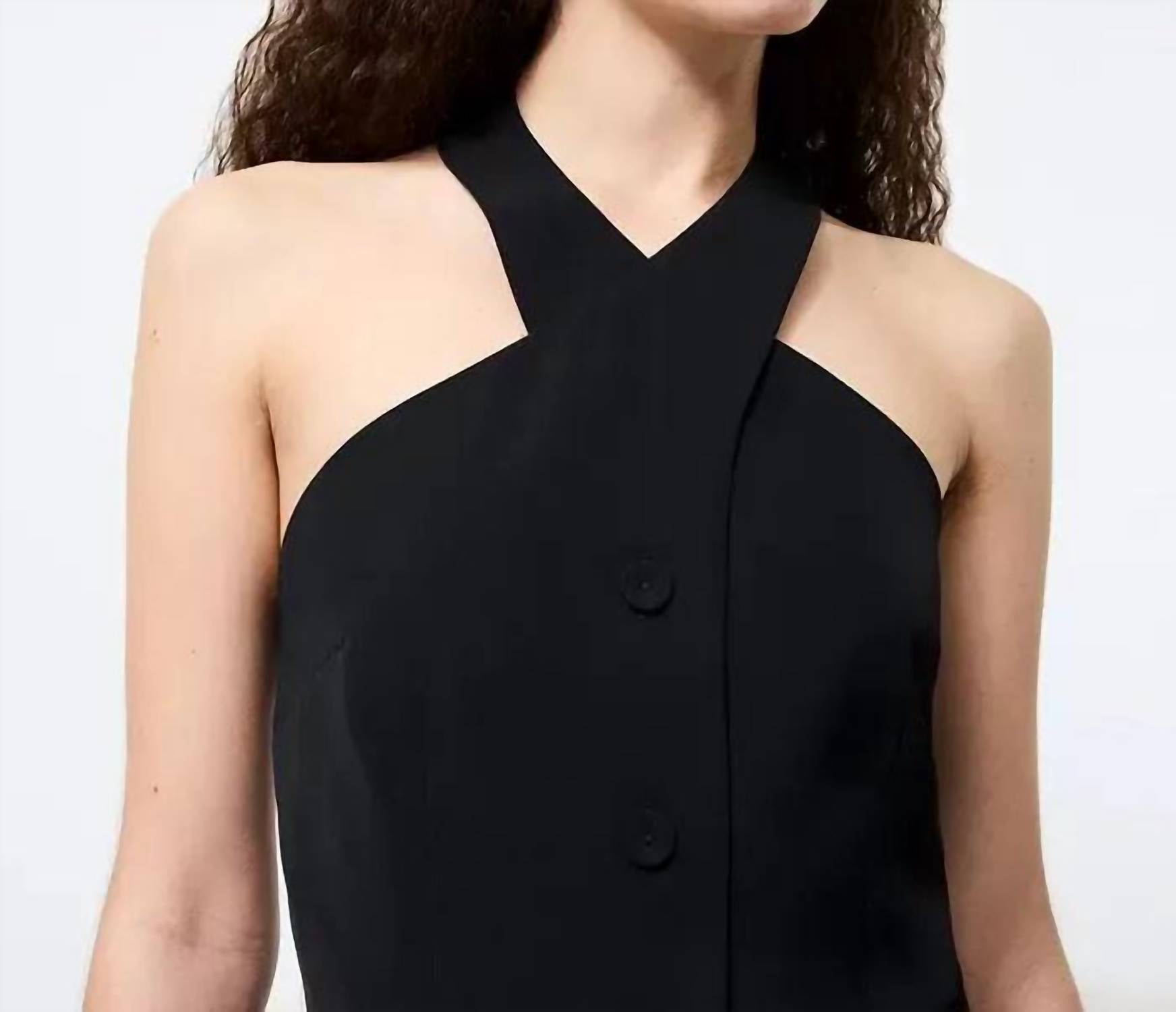 A vest so versatile you can mix and match it with almost any outfit and it will feel brand new every time. Elevate your style with the FRENCH CONNECTION Harry Suiting Criss Cross Vest, ideal for a dinner party or any minimalist occasion. This sleeveless vest, crafted from 100% durable polyester, features a distinctive crisscross halter neckline and two sleek front flap pockets. Imported with functional back-of-neck and front button closures, this black vest is both sophisticated and practical. Care is a breeze as it is machine washable, ensuring you look effortlessly polished for any summer event.