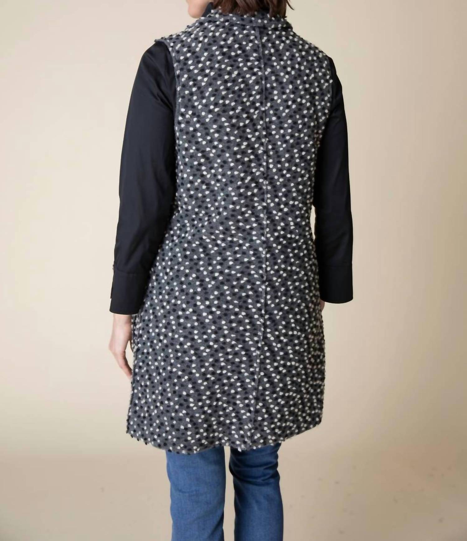 Introducing the Lots of Dots Tunic Vest by Habitat, a chic addition to your minimalist wardrobe. This sleeveless vest in grey features a playful polka dot pattern that adds a touch of whimsy to any spring outfit. Designed with a practical v-neck, button closure, and convenient pockets, this piece is ideal for the modern woman. Care: Hand wash and line dry.
