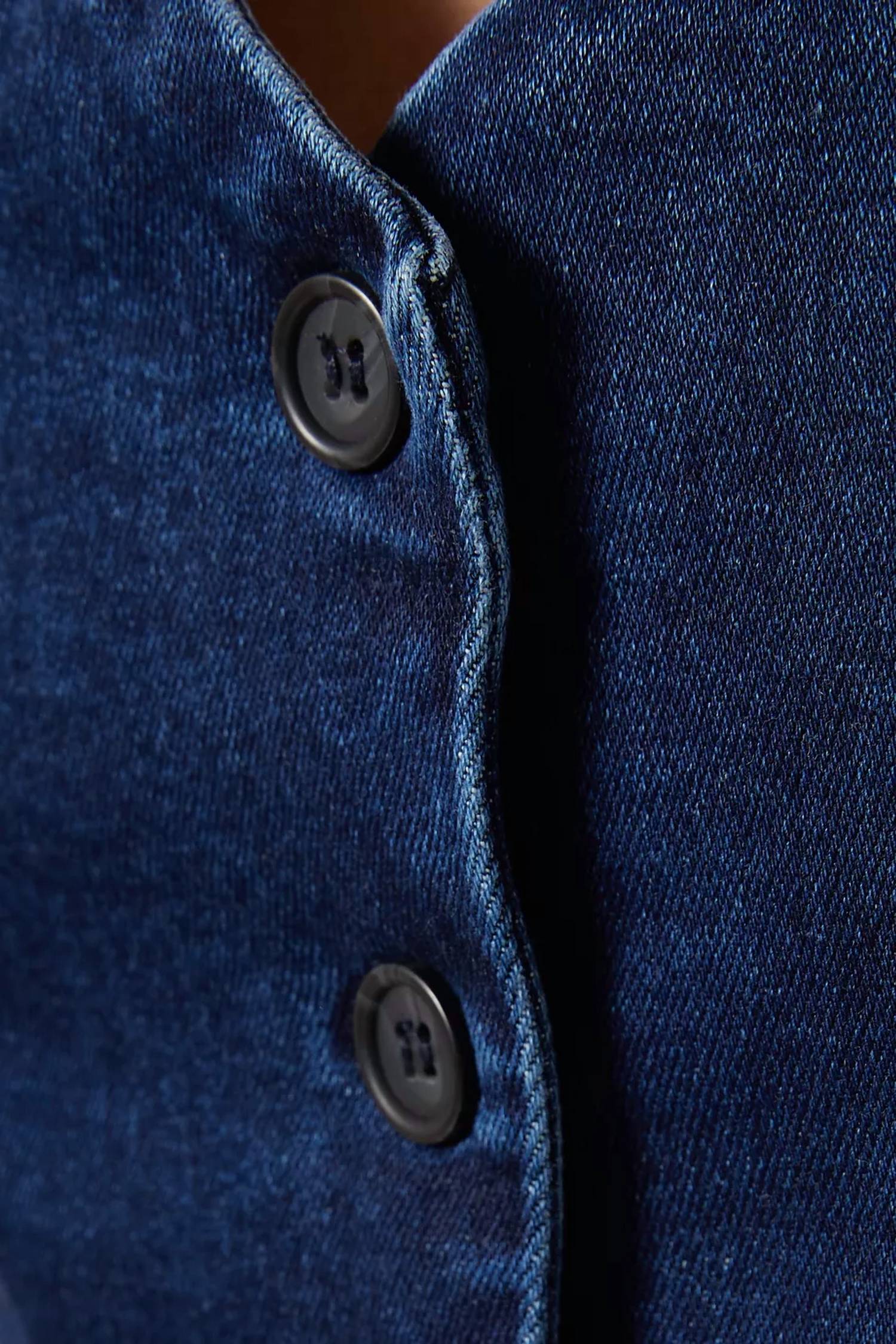 The Ella Waistcoat Denim Vest by Le Jean is a chic addition to your wardrobe, offering an effortlessly cool attitude in an on-trend 90s fashion style. This sleeveless vest is crafted in the USA from a cotton blend that includes 92% cotton, 5% polyester, and 2% spandex, ensuring a comfortable fit with just the right amount of stretch. Featuring a V-neckline and button closure, it is fully lined for added sophistication. Care is a breeze with machine wash instructions, making it an ideal piece for music festivals or New Year's Eve events.
