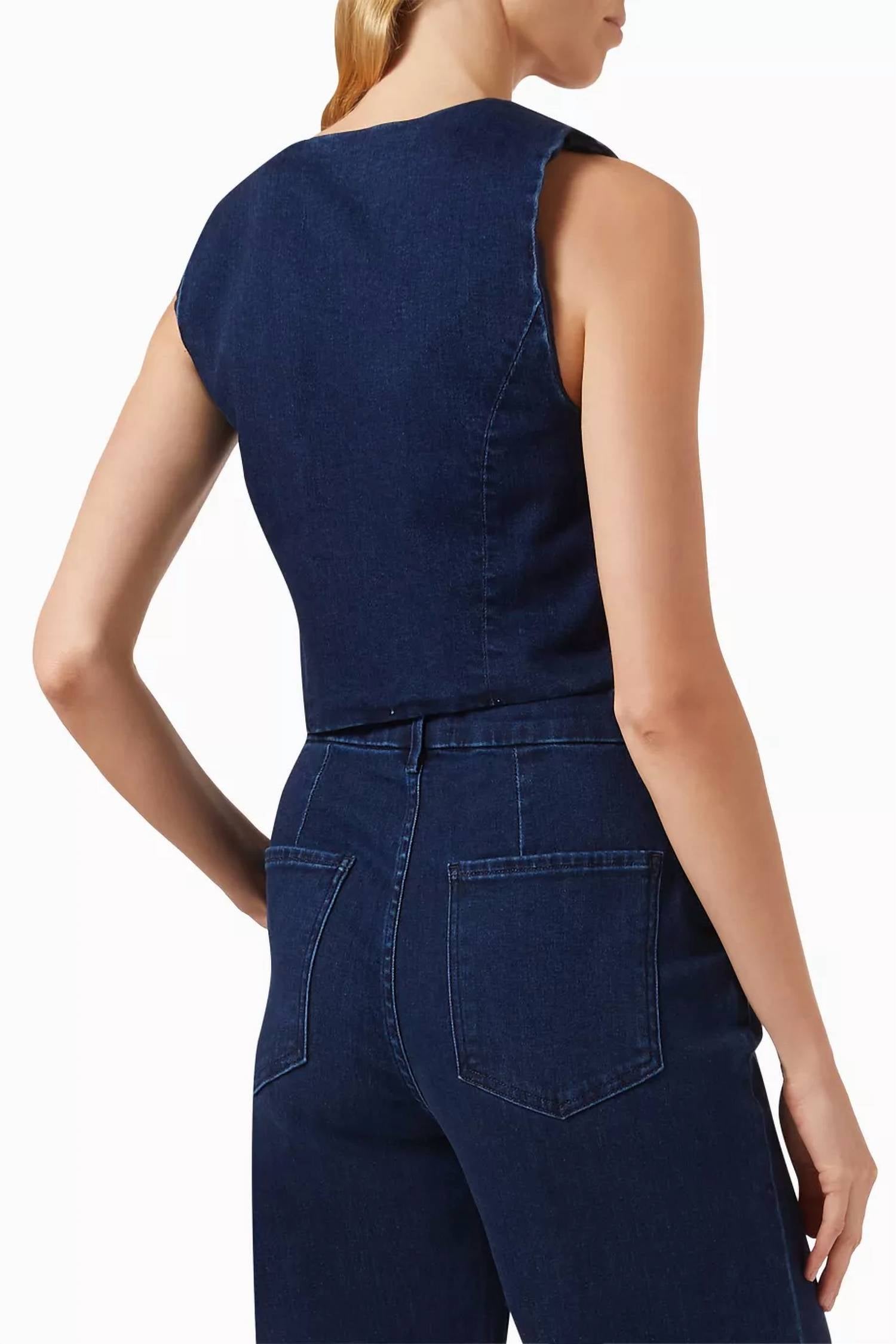 That extra layering piece you didn't know you needed! The Ella Waistcoat Denim Vest by Le Jean is a chic addition to your wardrobe, offering an effortlessly cool attitude in an on-trend 90s fashion style. This sleeveless vest is crafted in the USA from a cotton blend that includes 92% cotton, 5% polyester, and 2% spandex, ensuring a comfortable fit with just the right amount of stretch. Featuring a V-neckline and button closure, it is fully lined for added sophistication. Care is a breeze with machine wash instructions, making it an ideal piece for music festivals or New Year's Eve events.