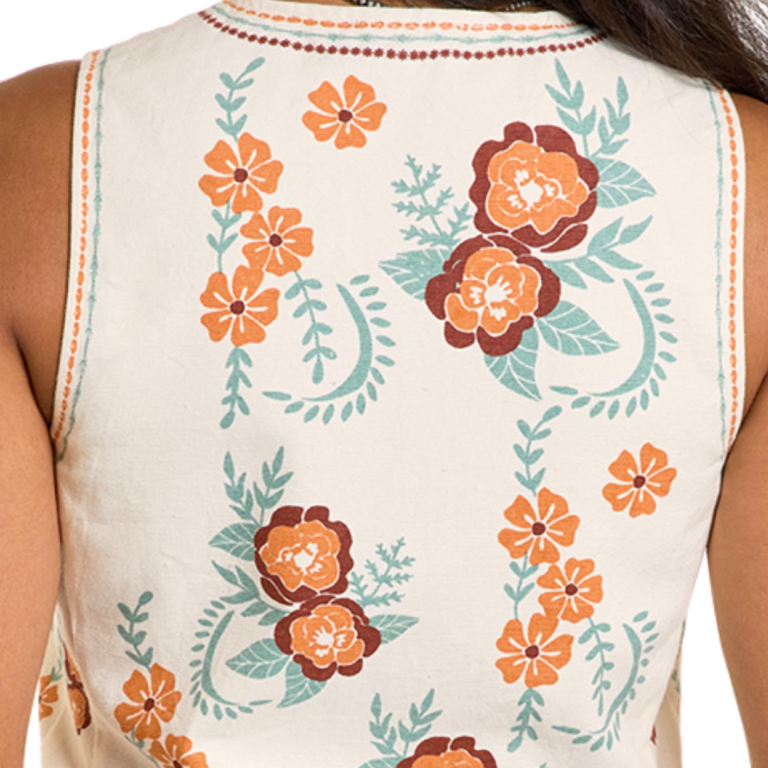 Throw this vest over an all black outfit for a perfectly polished look. Introducing the Floral Print Vest by Rock & Roll Denim, a lively addition to your wardrobe with its vibrant rose/mauve floral pattern. This sleeveless vest is ideal for layering, offering a playful boho chic vibe suitable for a spring holiday party. Constructed with a convenient hook and eye closure, it enhances your look effortlessly. The vest features a classic V-neck design, making it a versatile piece for any stylish occasion.