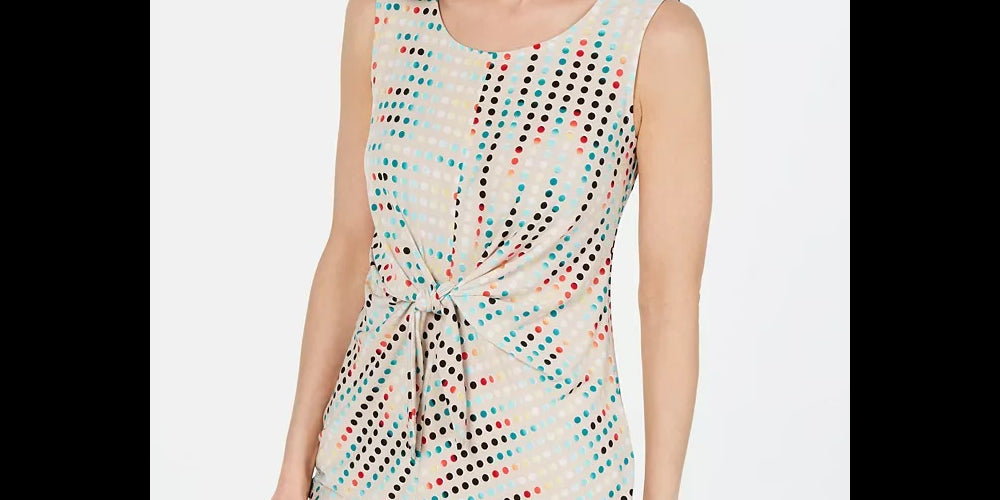 Alfani Women's Printed Sleeveless Tie-Front Top Beigekhaki Size Large