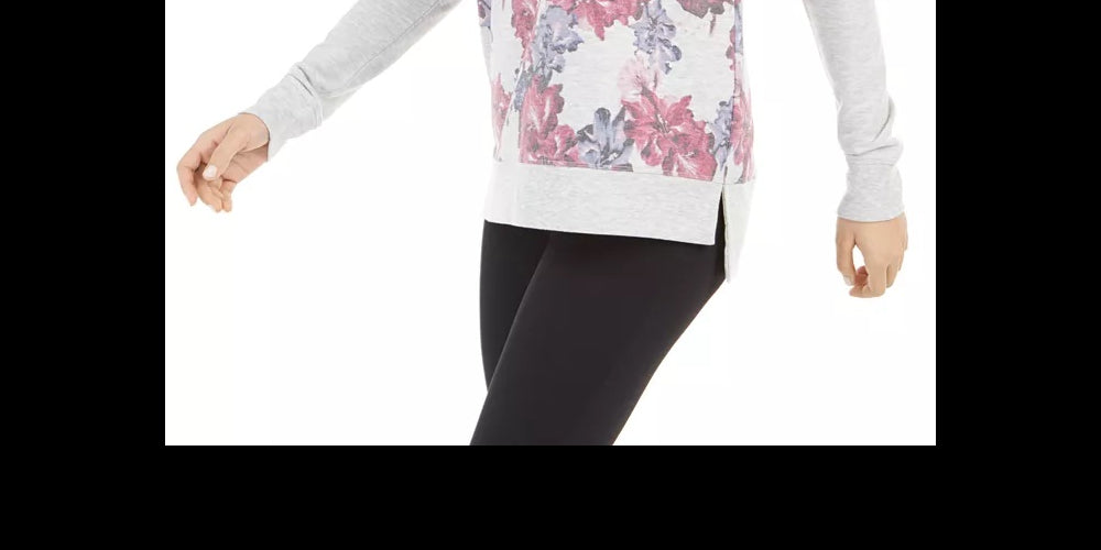 Semi-fitted|French terry|Scoop neckline; drop hem with vents at sides|Polyester/rayon/spandex
