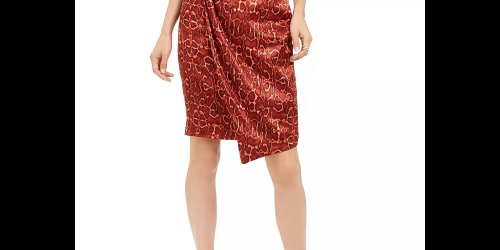 INC International Concepts Women's Snake Print Mini Asymmetrical Skirt Orange Size 8