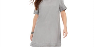 Style & Co Women's Fringed Denim T-Shirt Dress Gray Size X-Small