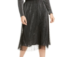 Alfani Women's Swiss Dot Metallic MIDI Skirt Gray Size Petite Small