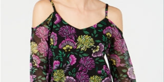 INC International Concepts Women's Cold Shoulder Floral V Neck Blouse Black Size Petite Small