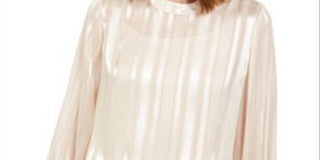 Alfani Women's Mock Neck Smocked Cuff Top Gold Size Petite S