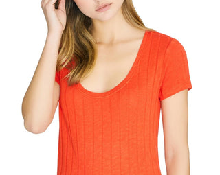 Sanctuary Women's Ribbed Scoop Neck Blouse Red Size X-Large