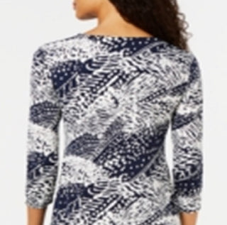 JM Collection Women's Printed Zip Front Dress Blue Size Petite