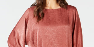 Alfani Women's Washed Satin Dolman Sleeve Bubble Top Pink SizePL