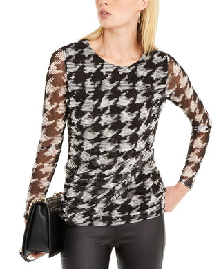 INC International Concepts Women's Petite Printed Sheer-Sleeve Top White Size Petite