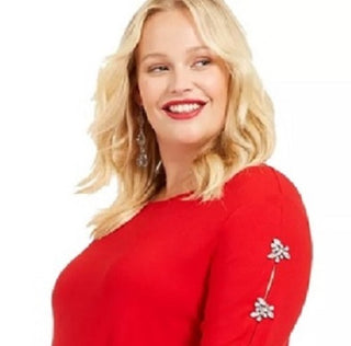 INC International Concepts Women's Embellished Sleeve Top Dark Red Size Petite Small