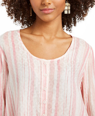 Style & Co Women's Printed Swing Blouse Med Pink Size Large