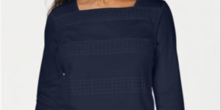 Karen Scott Women's Lace Square Neck 3/4 Sleeve Top Blue Size Petite Small