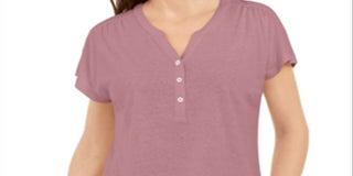 Style & Co Women's Dolman Sleeve Henley Linen Blend Top Purple Size Medium