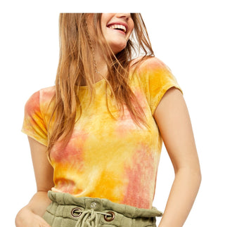 Free People Women's Yellow Tie Dye Short Sleeve Crew Neck Crop Top Yellow Size Large