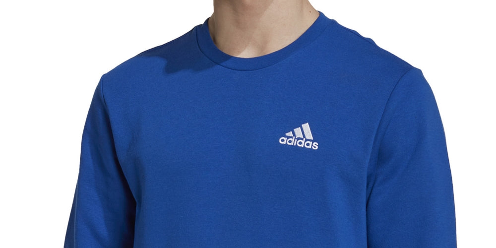 adidas Men's Feel Cozy Essentials Classic Fit Embroidered Logo Fleece Sweatshirt Blue Size XX-Large