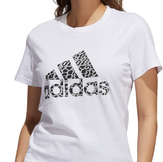 adidas Women's Cotton Animal Print Logo T-Shirt White Size Small