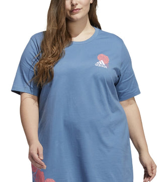 adidas Women's Botanical Graphic T-Shirt Dress Blue Size 1X