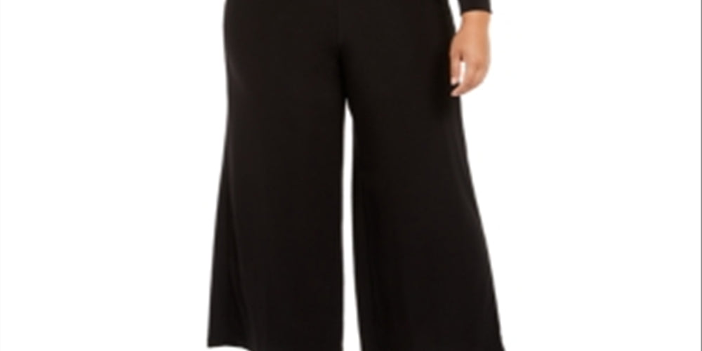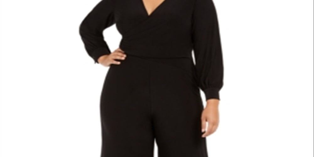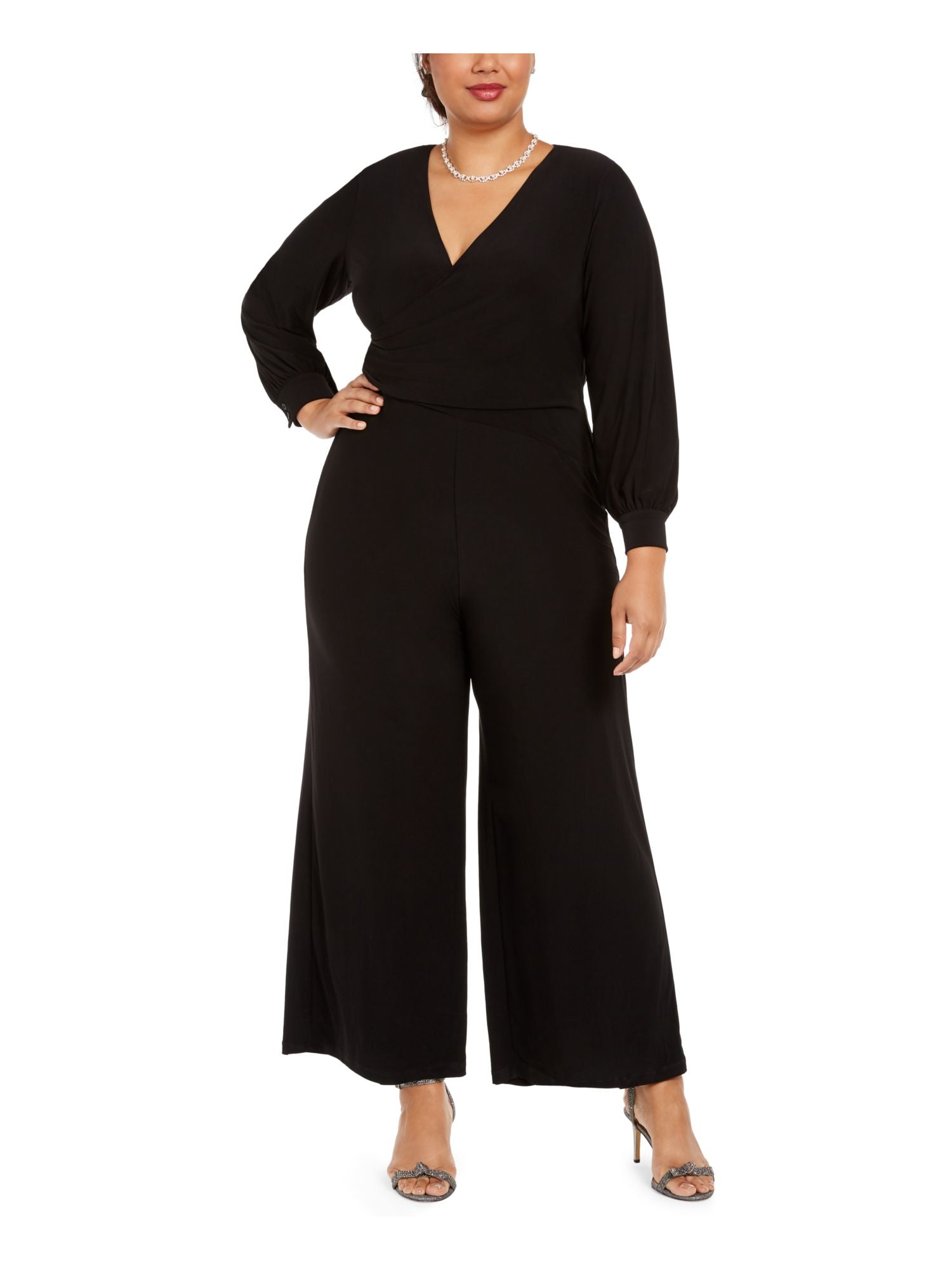 adrianna papell|style; jumpsuit|occasion; evening|size; 24w|material; polyester|color; black|v neck
