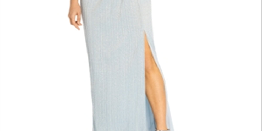 Adrianna Papell Women's Metallic Crinkle Mesh One Shoulder Gown Blue Size 8