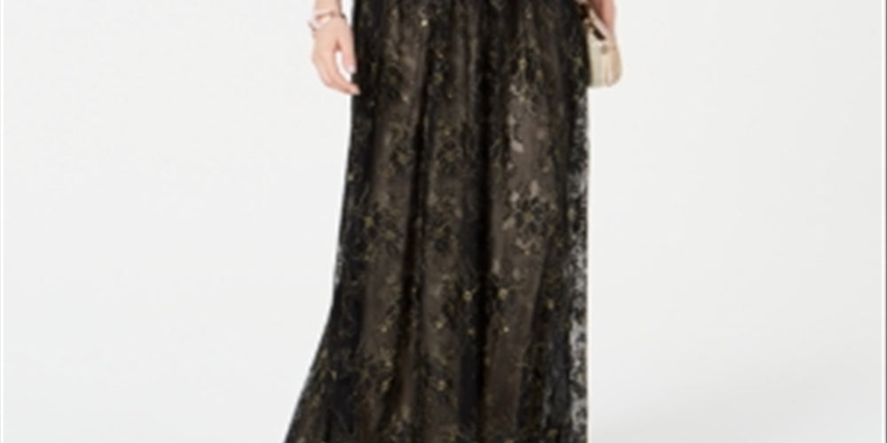 Adrianna Papell Women's Metallic Lace Long Dress Black Size 10
