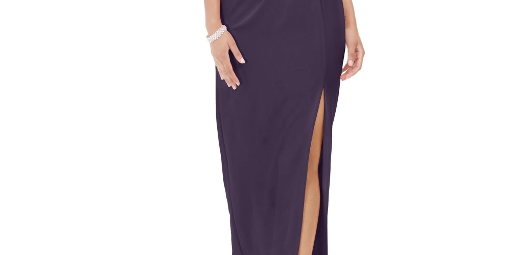 Adrianna Papell Women's Ruffled One-Shoulder Gown Purple Size 18