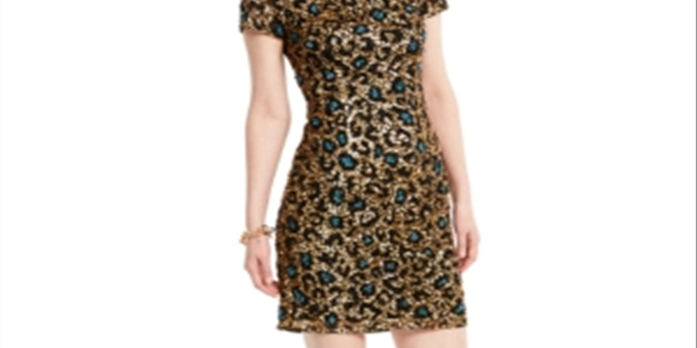Adrianna Papell Women's Sequined Animal Print Short Sleeve Dress Black - Gold Size 8