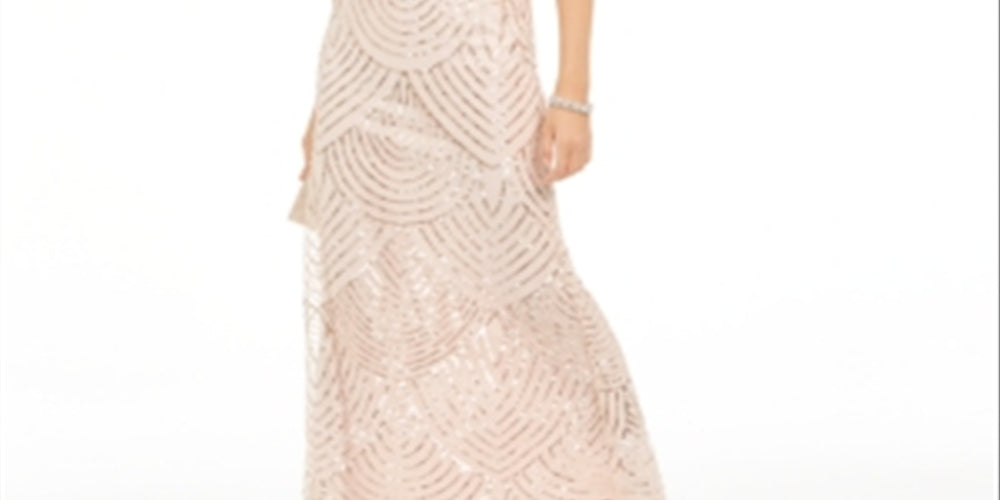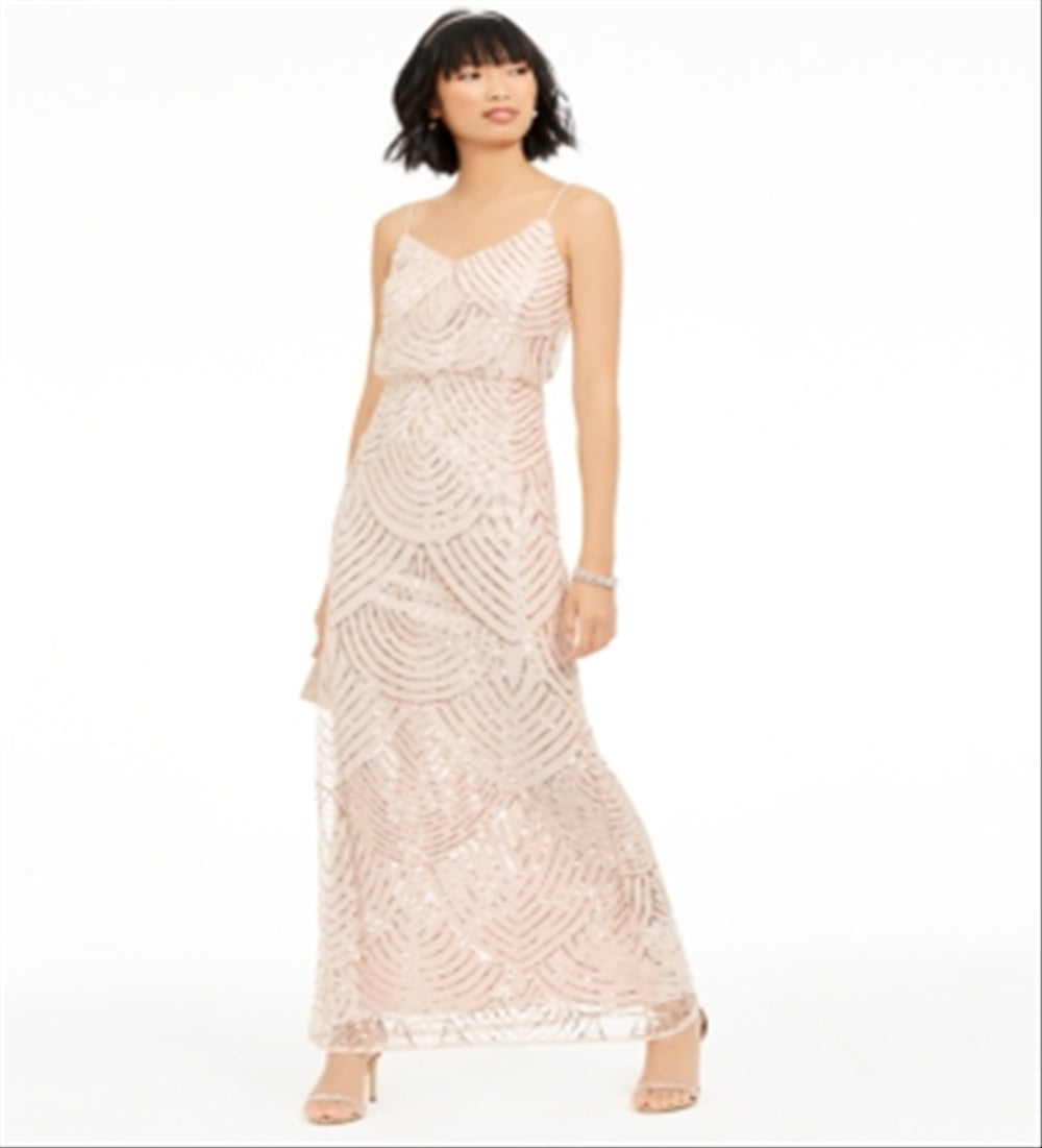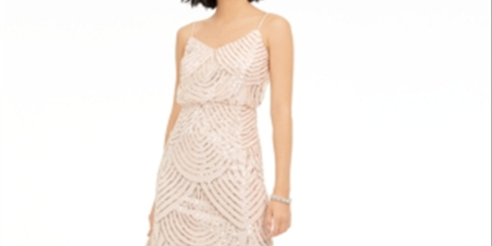 ADRIANNA PAPELL Womens Sequined Spaghetti Strap V Neck Maxi Sheath Evening Evening Dress