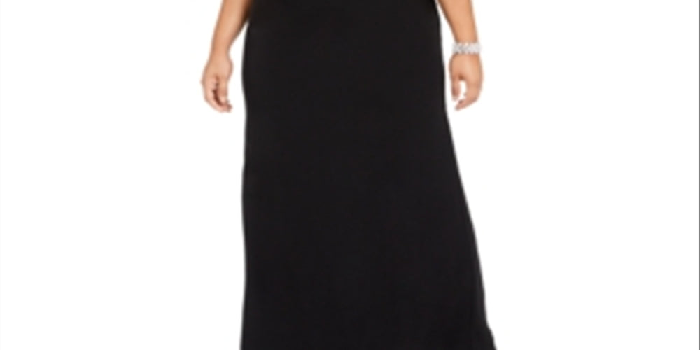 Adrianna Papell Women's Sleeveless Boat Neck Full Length Evening Sheath Dress Black Size 18