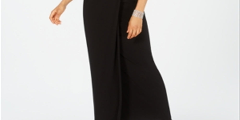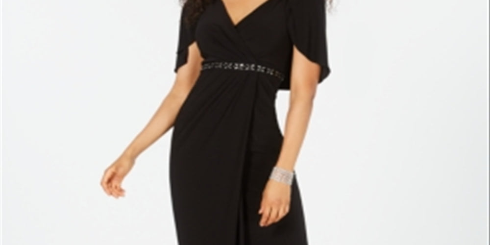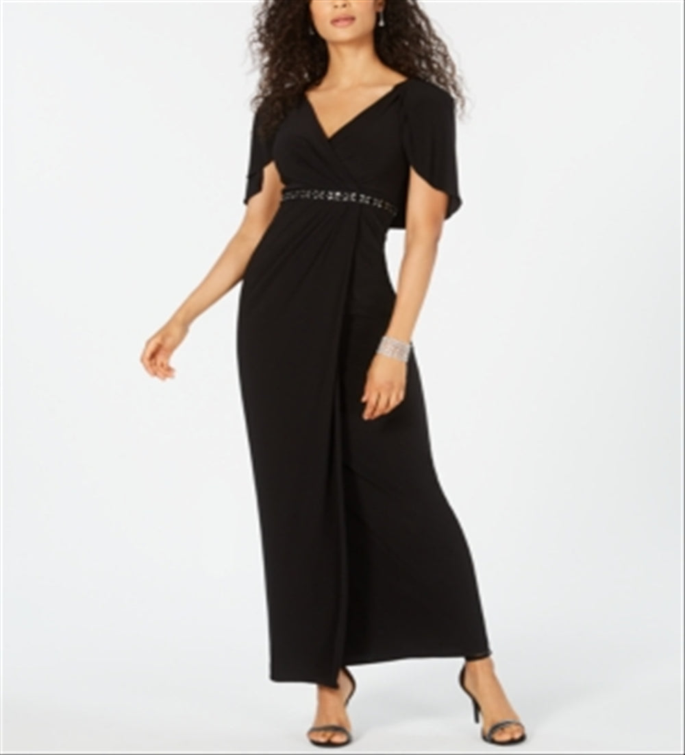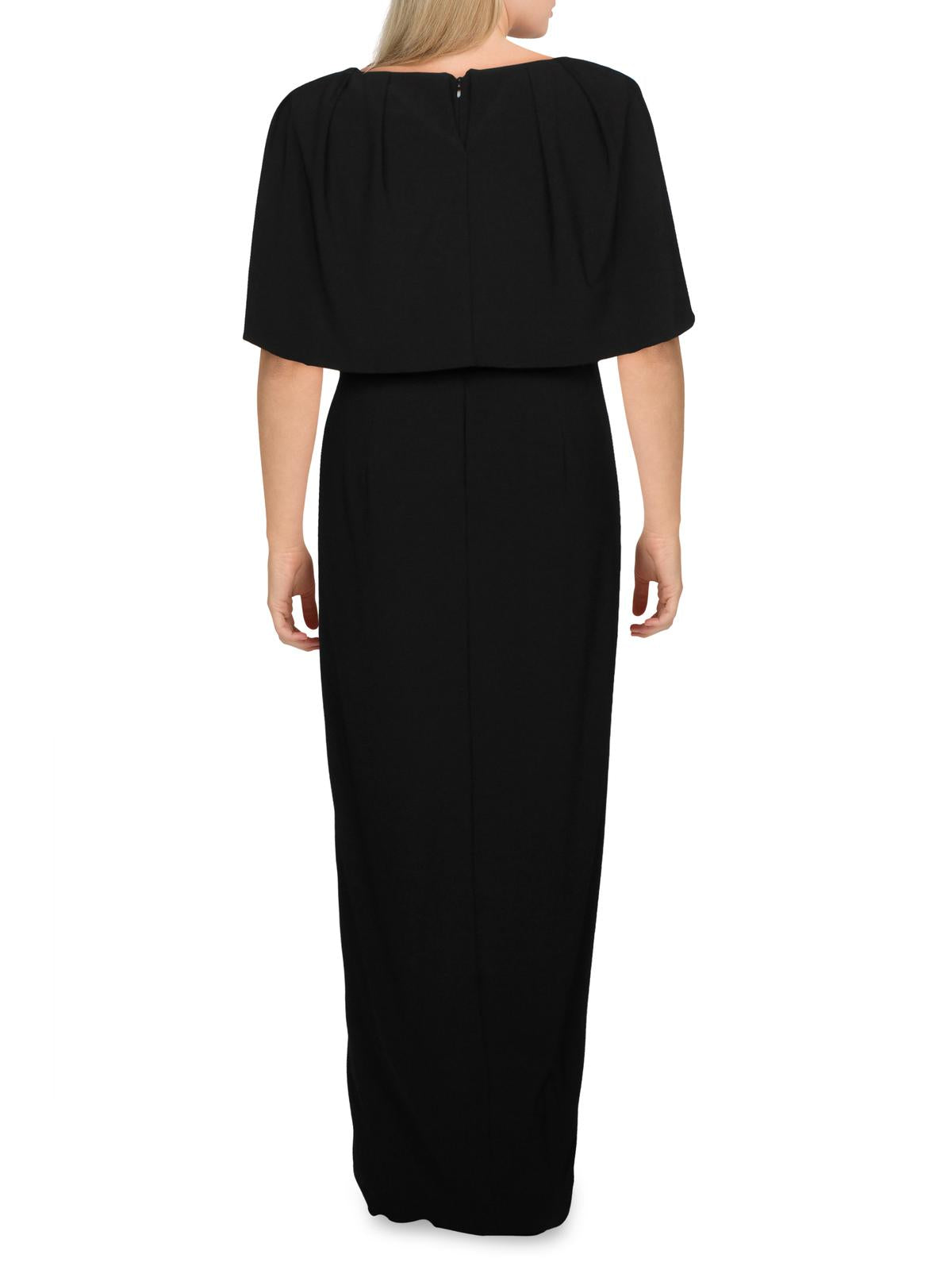 Adrianna Papell Women's Slitted Short Sleeve V Neck Full Length Evening Fit Flare Dress Black Size 4
