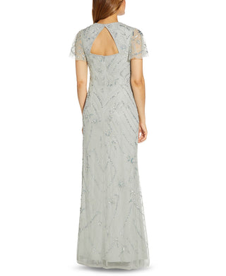 Adrianna Papell Women's Beaded Evening Gown Blue Size 12Petite