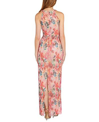Adrianna Papell Women's Floral Halter Neck Organza Gown Pink Size 8