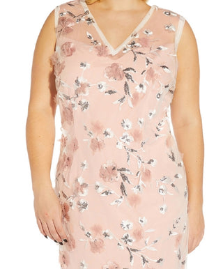 Adrianna Papell Women's Floral Applique Sequined Dress Brown Size 14W