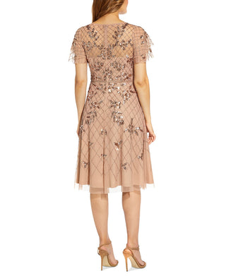 Adrianna Papell Women's Beaded Flutter Sleeve Dress Brown Size 4