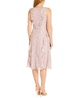 Adrianna Papell Women's Ruffled Floral Print Fit & Flare Dress Pink Size 14