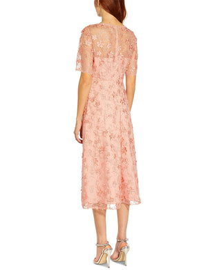 Adrianna Papell Women's Embroidered Fit & Flare Dress Pink Size 2
