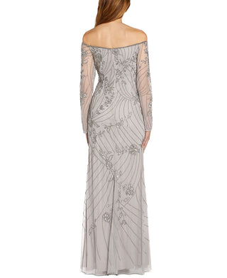 Adrianna Papell Women's Off The Shoulder Evening Gown Gray Size 12