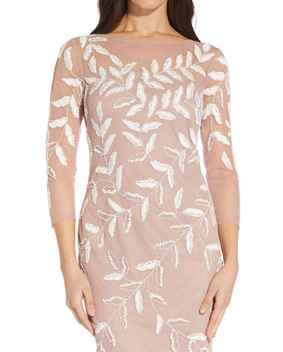 Adrianna Papell Women's Embellished 3/4 Sleeve Sheath Dress Pink Size 16