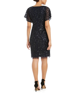 Adrianna Papell Women's Embellished Flutter-Sleeve Sheath Dress Navy Size 8