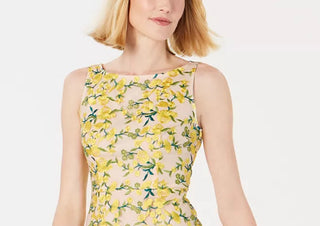 Adrianna Papell Women's Embroidered Overlay Mini Dress Yellow Size 10