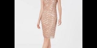 Adrianna Papell Women's Hand-Beaded Sheath Dress Pink Size 10