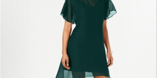 Adrianna Papell Chiffon-Overlay a-Line Dress Hunter Black Size M