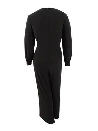 ADRIANNA PAPELL Women's Long Sleeve Wide Leg Evening Jumpsuit Plus Black Size 24W