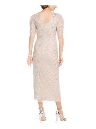 Adrianna Papell Womens Beaded Sheath MIDI Dress Brown Size 12
