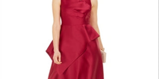 Adrianna Papell Women's Solid Sleeveless V Neck Knee Length Fit Flare Formal Dress Red Size 10